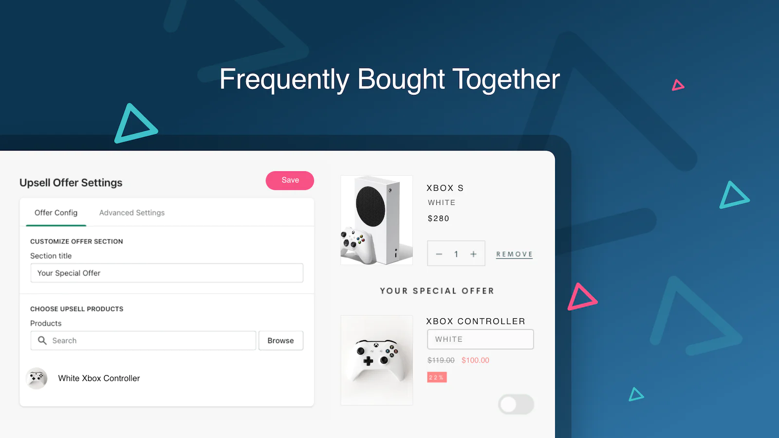 Retain your existing native user experience with a relevant in cart upsell & cross sell offer. Use triggers to show items that are frequently bought together. Stop with spammy popups that actually hurt your conversion! Instead use an approach that is fully embedded within your existing customer experience and Shopify theme.