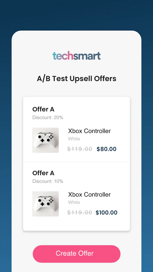 Increase your order value with in cart upsell & cross sell. A/B test multiple offers with different triggers & track results per offer. Triggers can include products that are present in the shopper’s cart or a minimum order quantity.