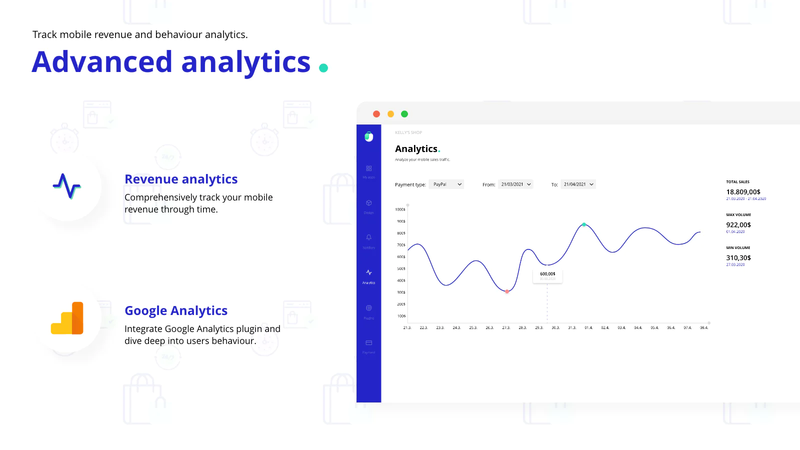 Let your customers enjoy a seamless shopping experience on their mobile devices. They will reward you with recurring purchases and good reviews while you get an extra channel to communicate with them via mobile push notifications. This gives you the ability to upsell and cross-sell that is matched only by SMS marketing, except this is free of charge!