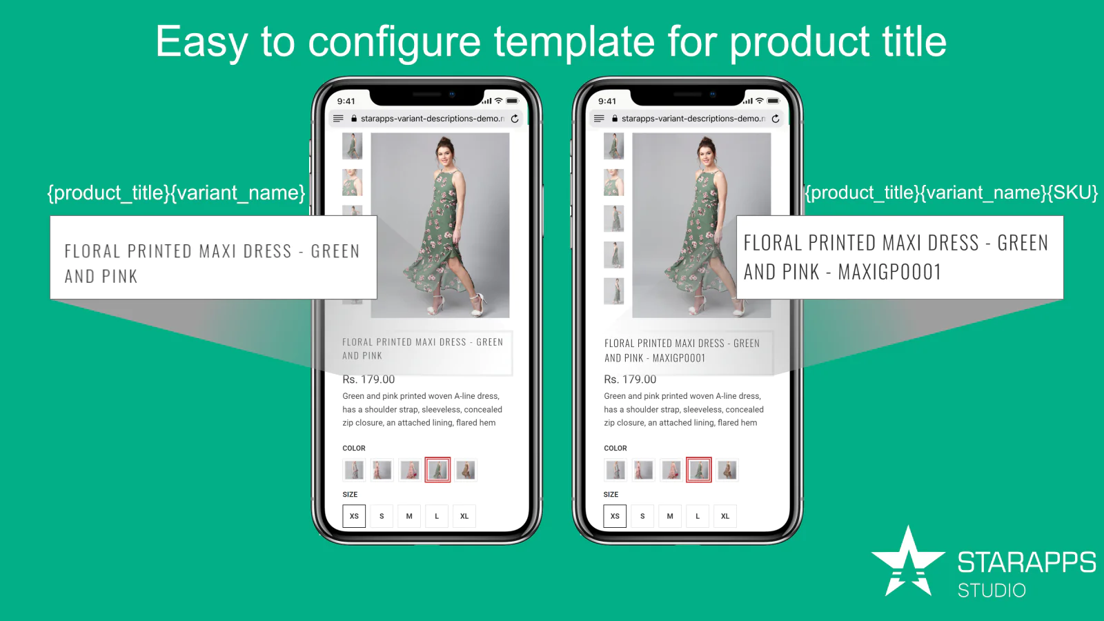 All you need to do is create a template for the product title. The product title template can include variant specific values like variant name, product options, SKU, product type, product vendor, etc. You just need to create the template once, the app will automatically apply it to all the product pages in your store.