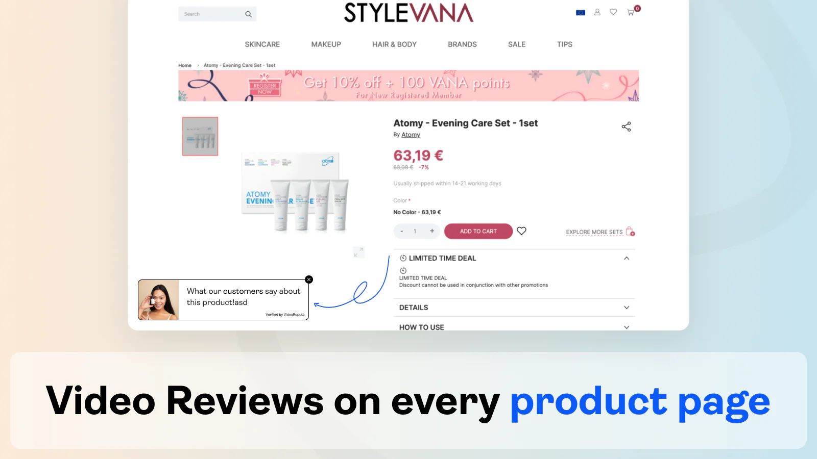 Get VideoRepute app to increase your sales with video testimonials and reviews. Automatically collect video testimonials and showcase them on any product page.