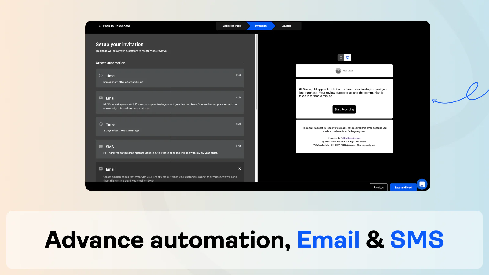 Video Reviews on Autopilot : Every time a new customer orders, we’ll send an invite to film a quick video, incentivized with a chance to win cash.