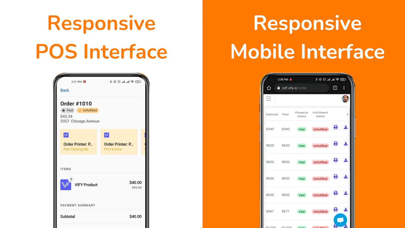 Like actual orders, Draft orders can be viewed on the app, allowing merchants to download, print, and send them to customers via email (with a PAY NOW button).