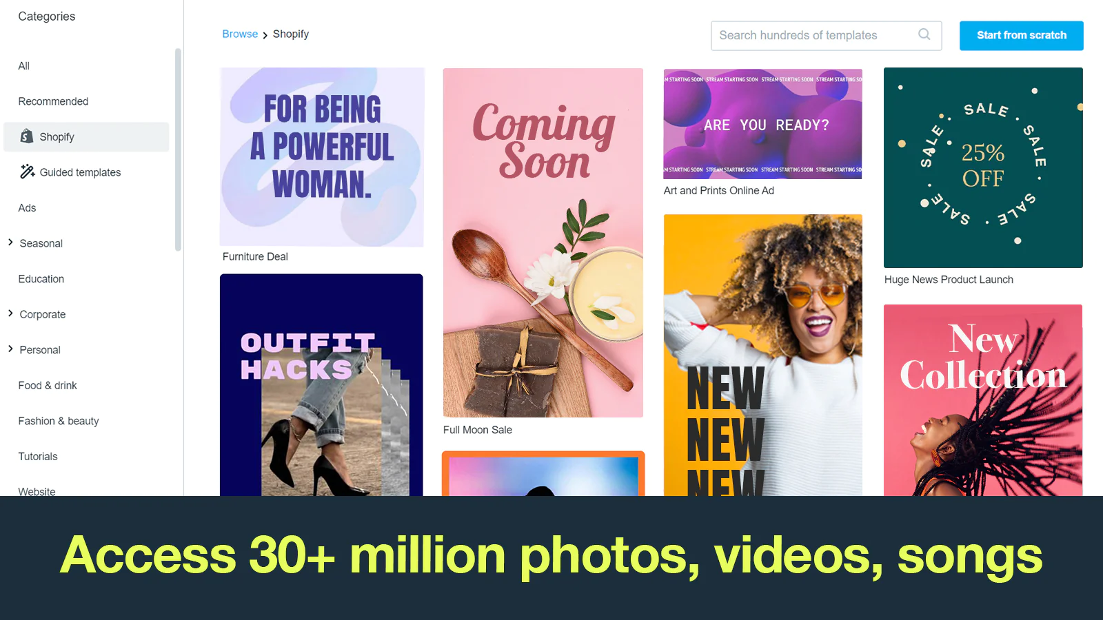 Create Video ads : Over 3,000 templates to help you drive traffic to your store.