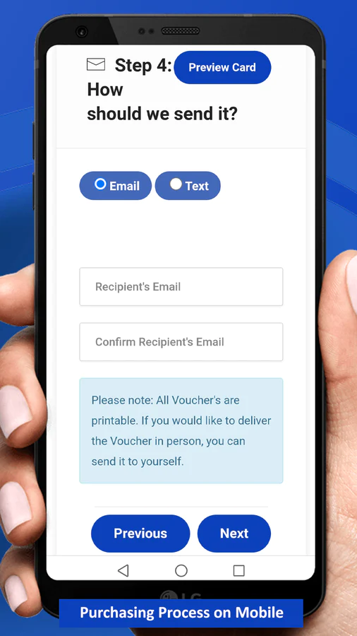 eVouchers are sent to the recipient via text or email and delivered immediately, or any time the customer chooses in the future such as an anniversary, birthday, etc. and you don’t have to worry about a thing as we take care of everything.