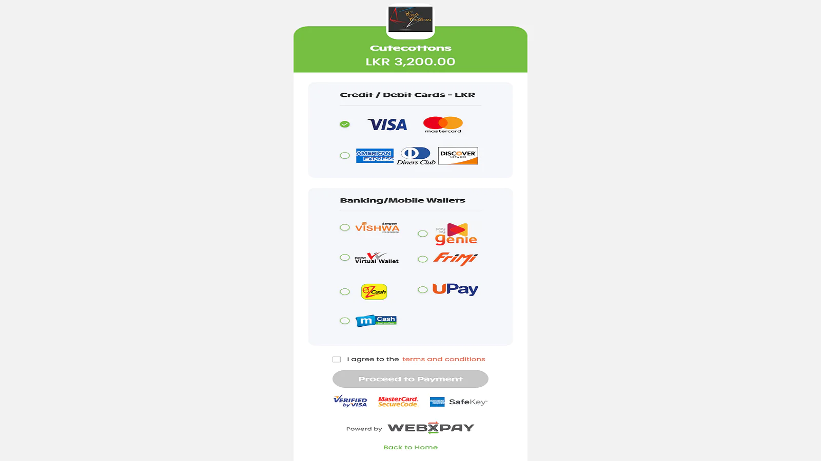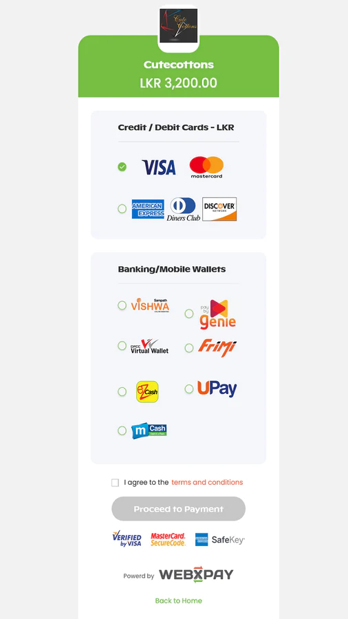 You can now accept payments with all leading payment brands such as Visa, MasterCard, American Express, China Union Pay, Discover, Dinners Club, DFCC Virtual Walllet, FriMi, UPay, Genie, eZ Cash, MCash and Sampath Vishwa, securely with WEBXPAY. Download now to start accepting payments with WEBXPAY.