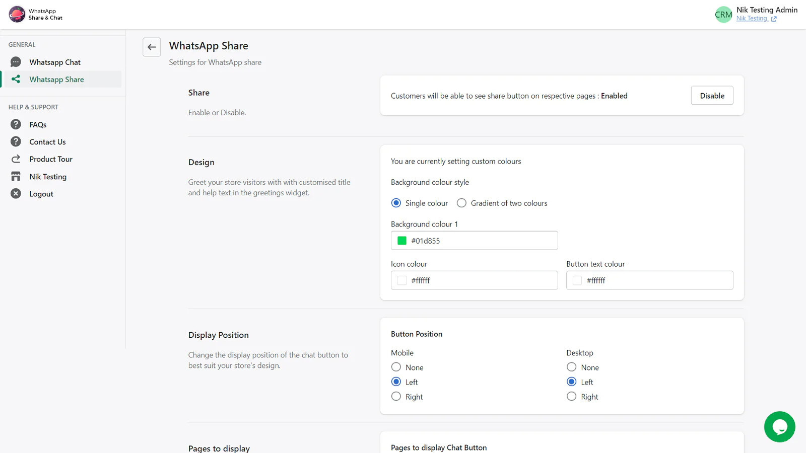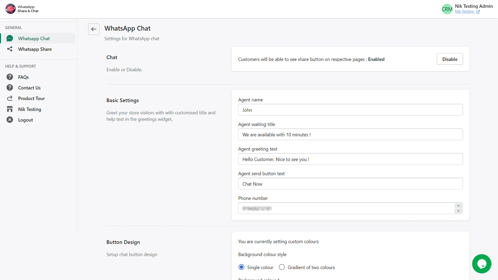 Features - The WhatsApp button can be customized and displayed anywhere on the page to make it more visible.