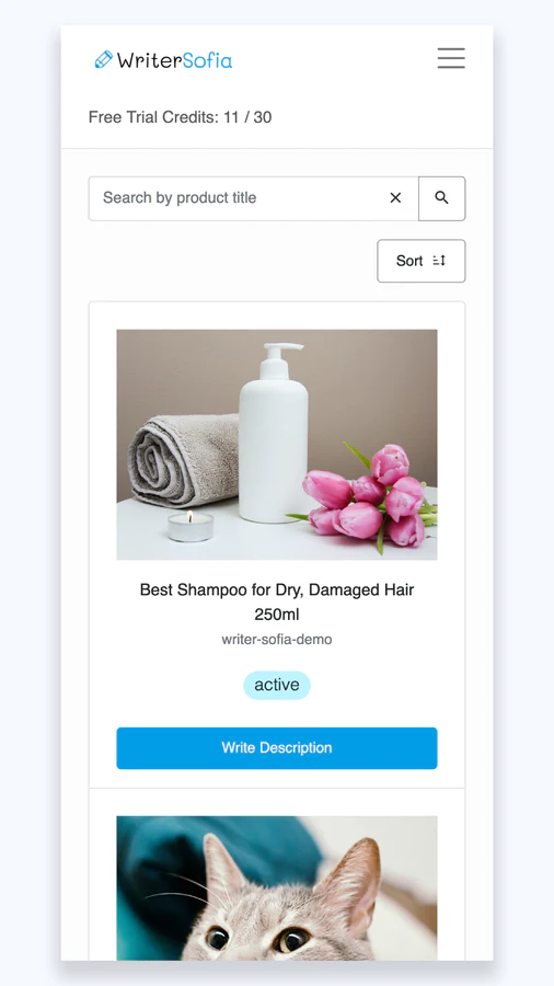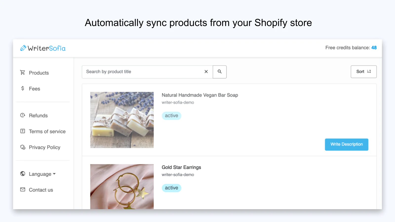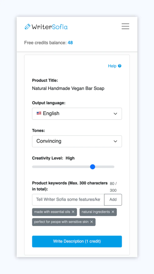 Writer Sofia can help you improve your conversion rates by creating descriptions that are more likely to convert visitors into customers. You can easily write and test more copy variations to increase sales.