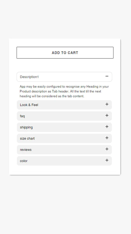 Add tabs to product page : Automatically create tabs using headings in your product page descriptions.