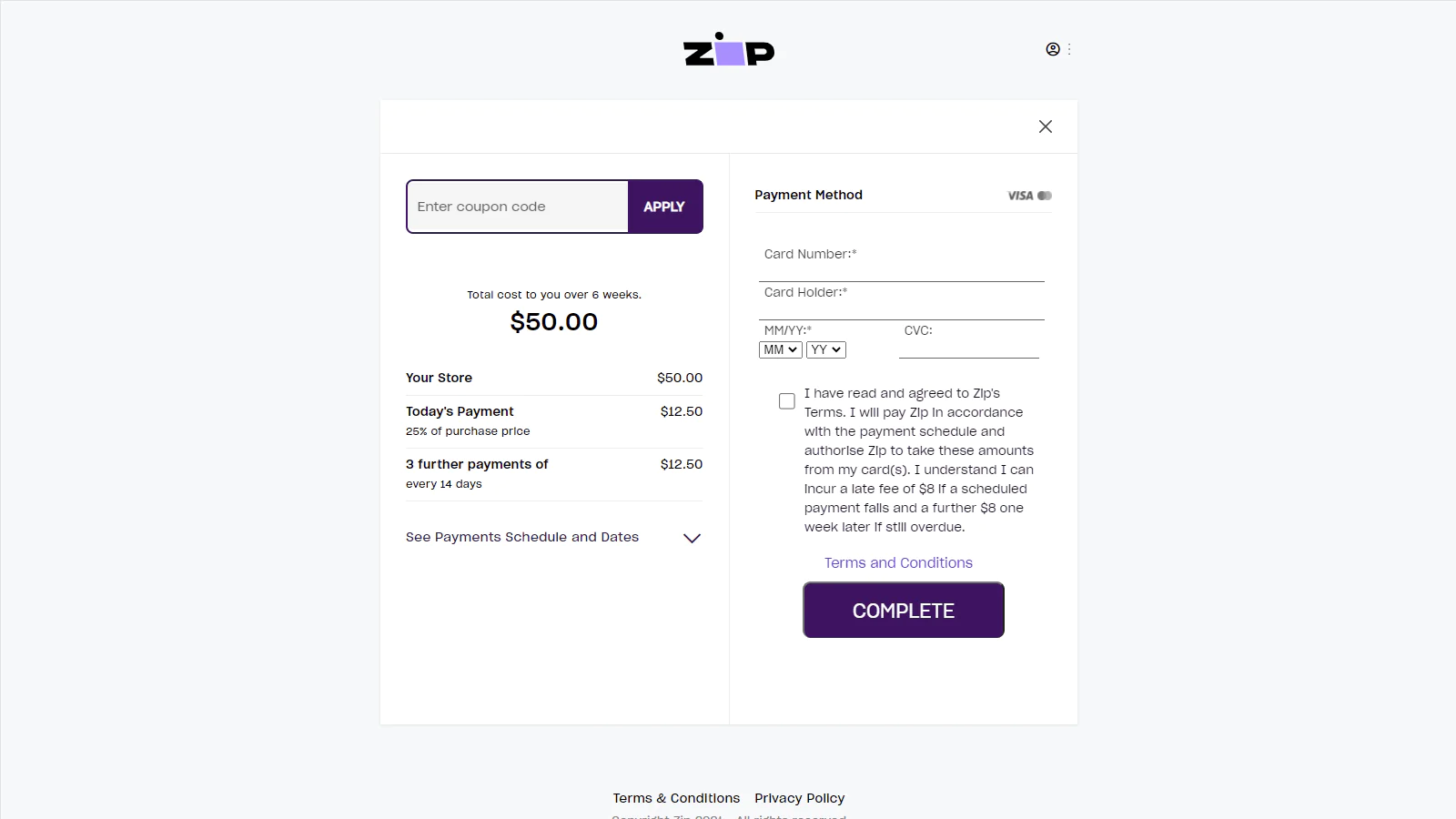 Integrating Zip is simple, just connect Zip to your Shopify store by adding your Zip API Keys from your payment settings.
