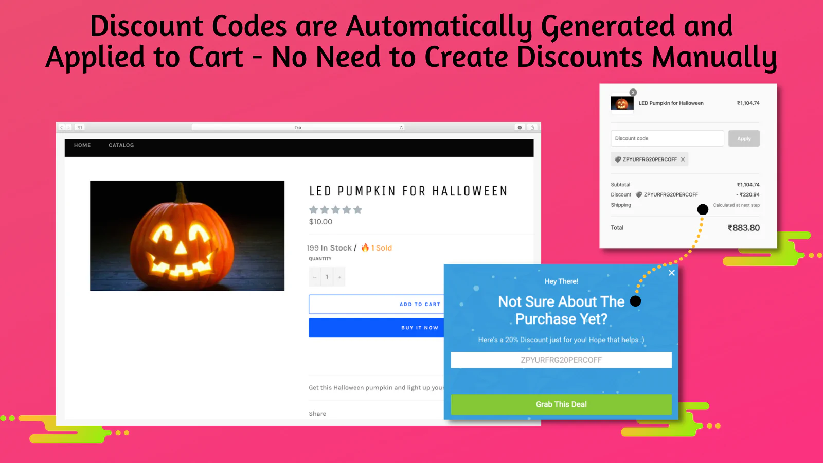 Automatic Discounts, Discount Code, Discount Pop Up & Coupon Code offers Pop-ups with automatic discount codes & pop-ups for exit intent to boost your sales and help you sell more.