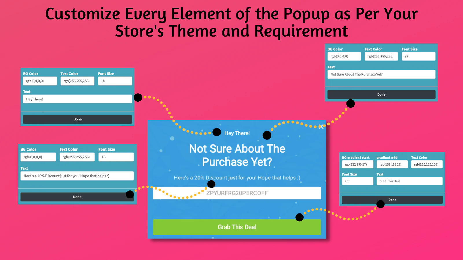 Customize your coupon code and automatic discount pop up to match with your store's theme. You can change the colors, text, and countdown timer for each offer that you create.
