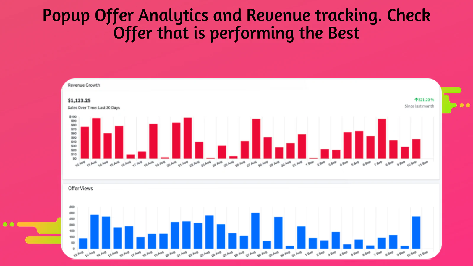 Monitor the performance of your exit intent and automatic discount offers. Check revenue growth, offer views, and top-performing offers.