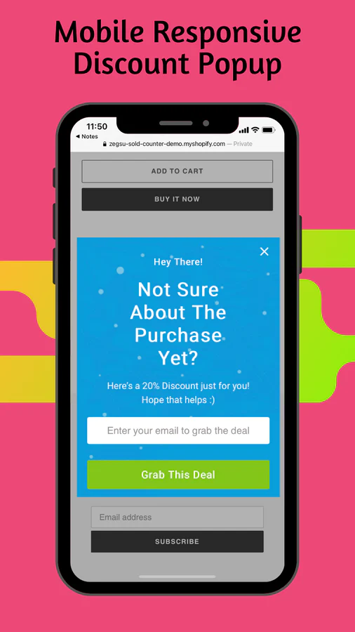 Our coupon code & Automatic discount pop up is 100% mobile responsive and is rendered brilliantly on mobile devices.