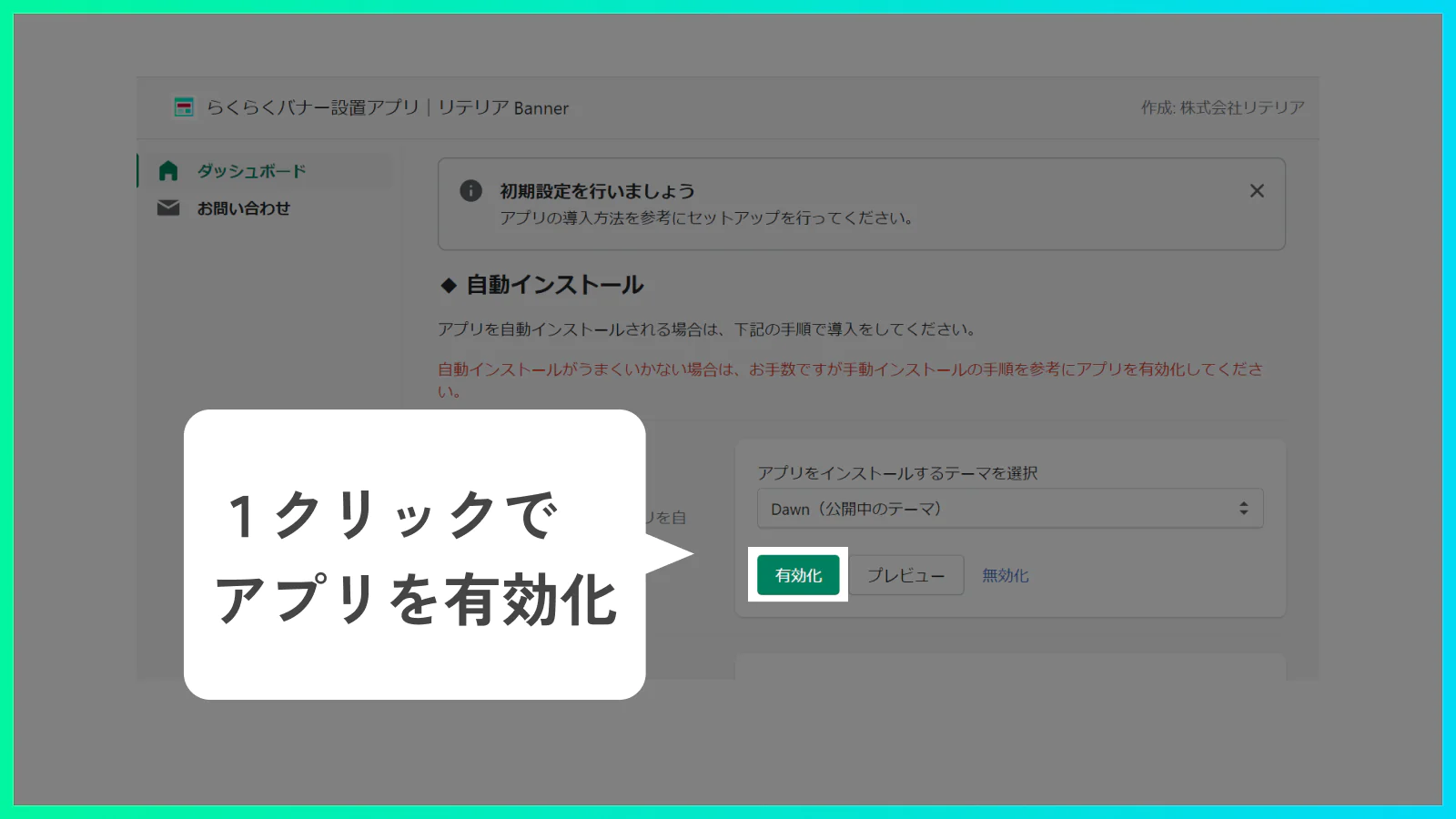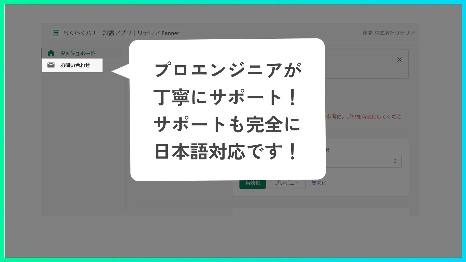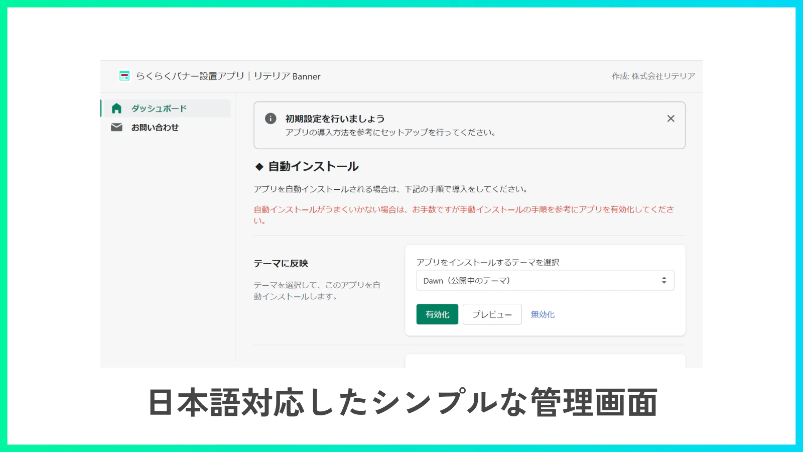 らくらく設定! : お好きなページに、ノーコードでBannerセクションを追加することができます。シンプルな設定画面なので、初心者の方でも簡単に設定できます!