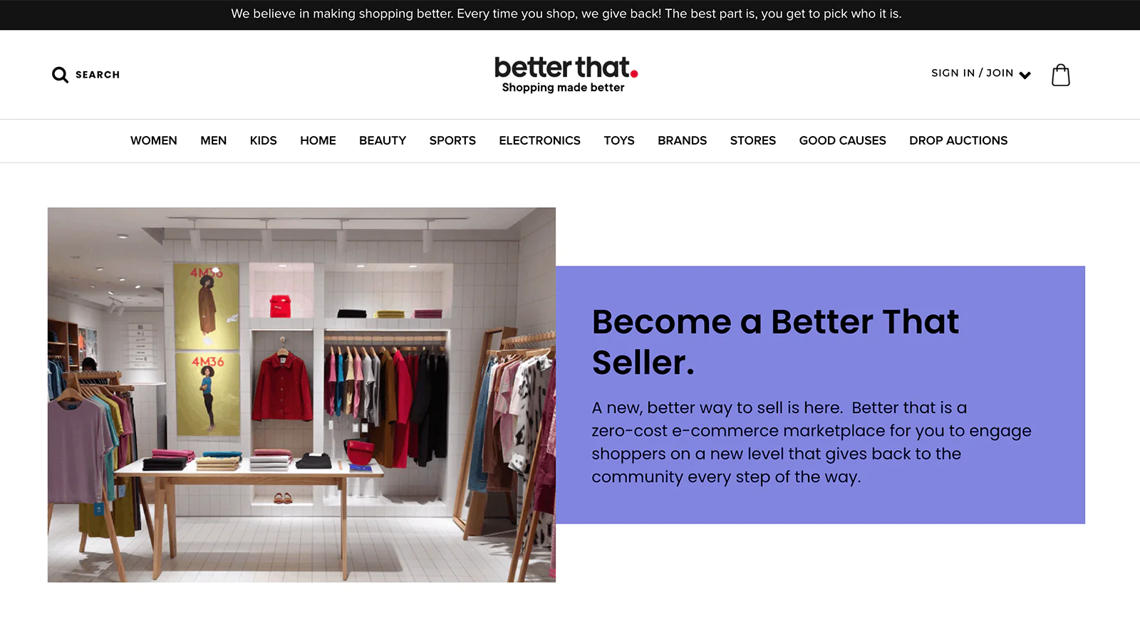 You can grow your business and increase sales when you sell your products on Betterthat - the new online marketplace where shoppers, retailers and good causes all do better.