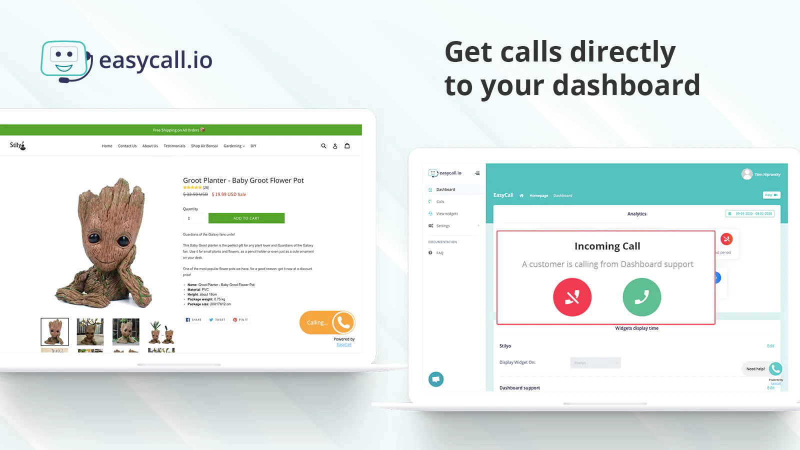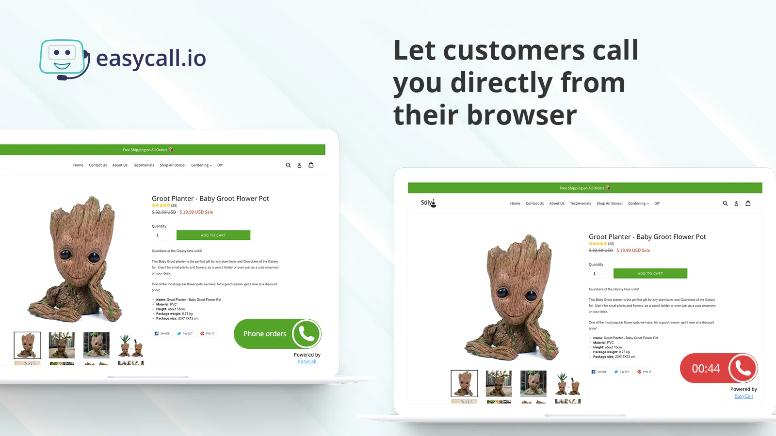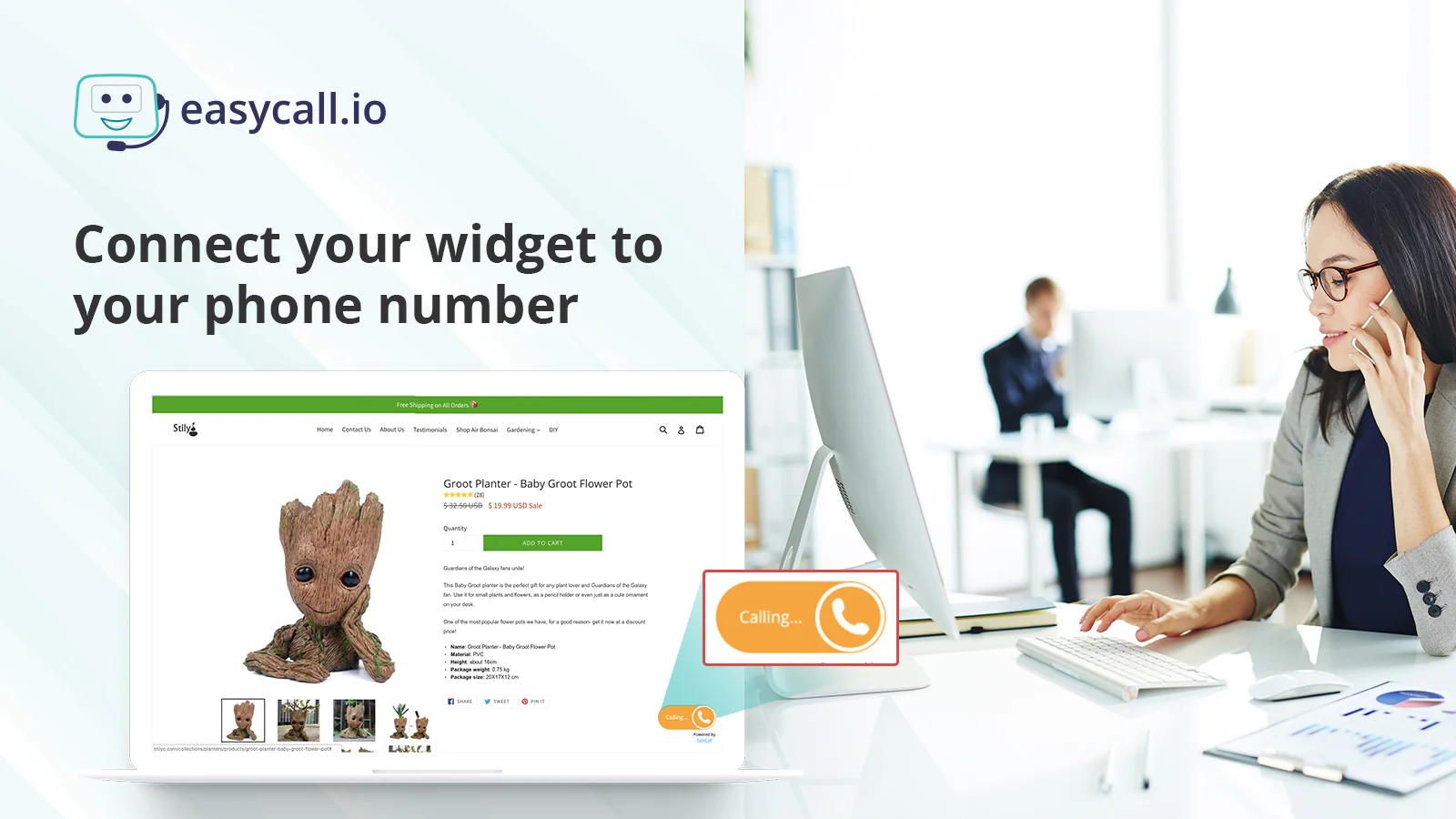 EasyCall's revolutionary call widget will allow customers to call you without having to type in your phone number, switch to different apps, and most importantly, without interrupting the purchase flow, making it much easier to get phone orders. Native alternative to Sonetel, Aircall, Bitrix, Freshcaller, Ringcentral & Grasshopper