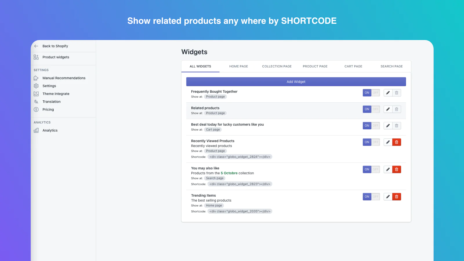 On the basis of our Globo Related Products | Also Bought app, admin can utilize a suitable logic to take out recommended items to display in the widgets such as: