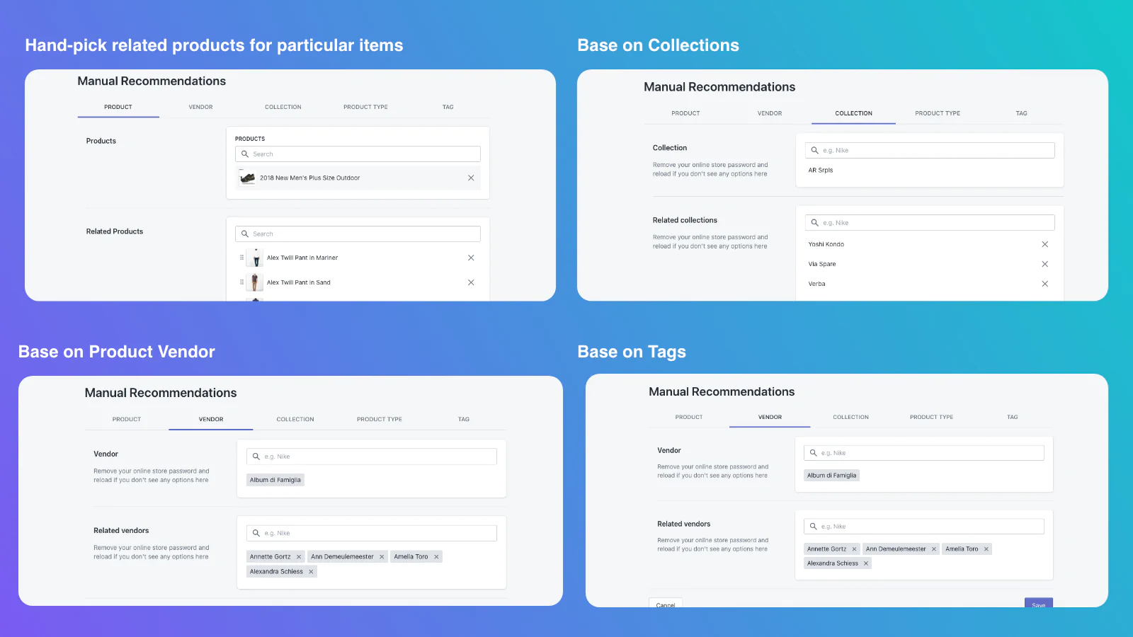 Product Recommendations : Boost your sales with recommended products on any pages. Recommended products by Tags, collection, vendor, handpick etc. Grow orders rapidly