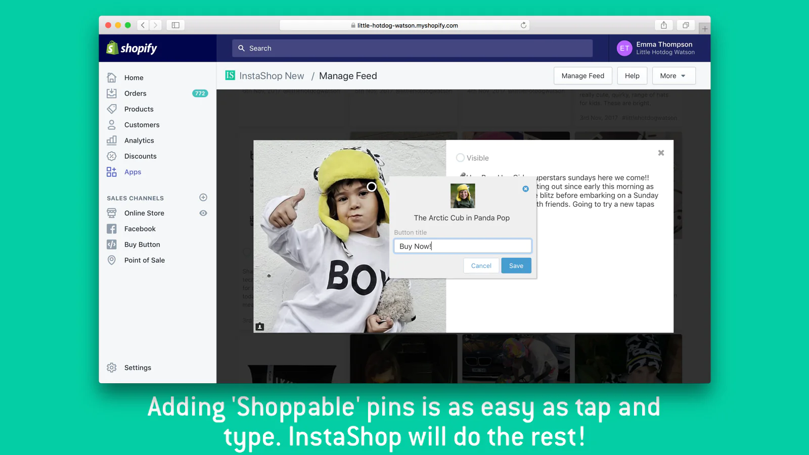 *InstaShop keeps customers in your store, FOCUSED on making a PURCHASE. *Bring SHOPPABLE Instagram galleries to your shop. *ENHANCE Instagram pictures with ‘click to buy’ pins *Pins link customers to PRODUCTS in your store. *EASY to setup and effortless to use,
