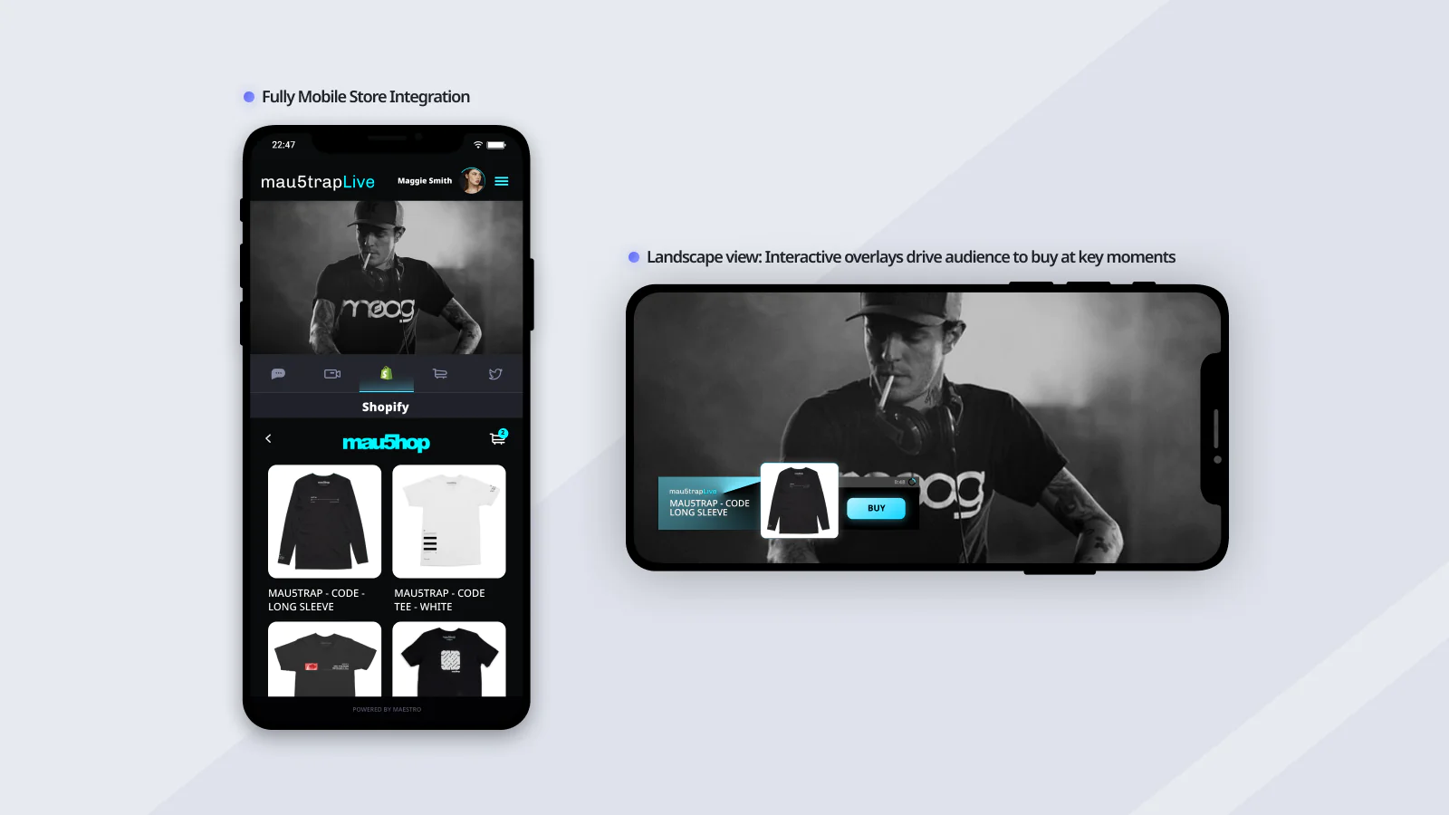 Think of Maestro as if Twitch and Wix had a baby--it’s a white label solution that makes it easy to create an interactive streaming destination on your own website or app. Host unique live events -- an intro to coffee pairings for your roastery, an in-depth interactive makeup tutorial, or a sustainability and sourcing Q&A for your newest line of jeans -- with integrated Shopify checkout flows that let your customers buy while they watch.