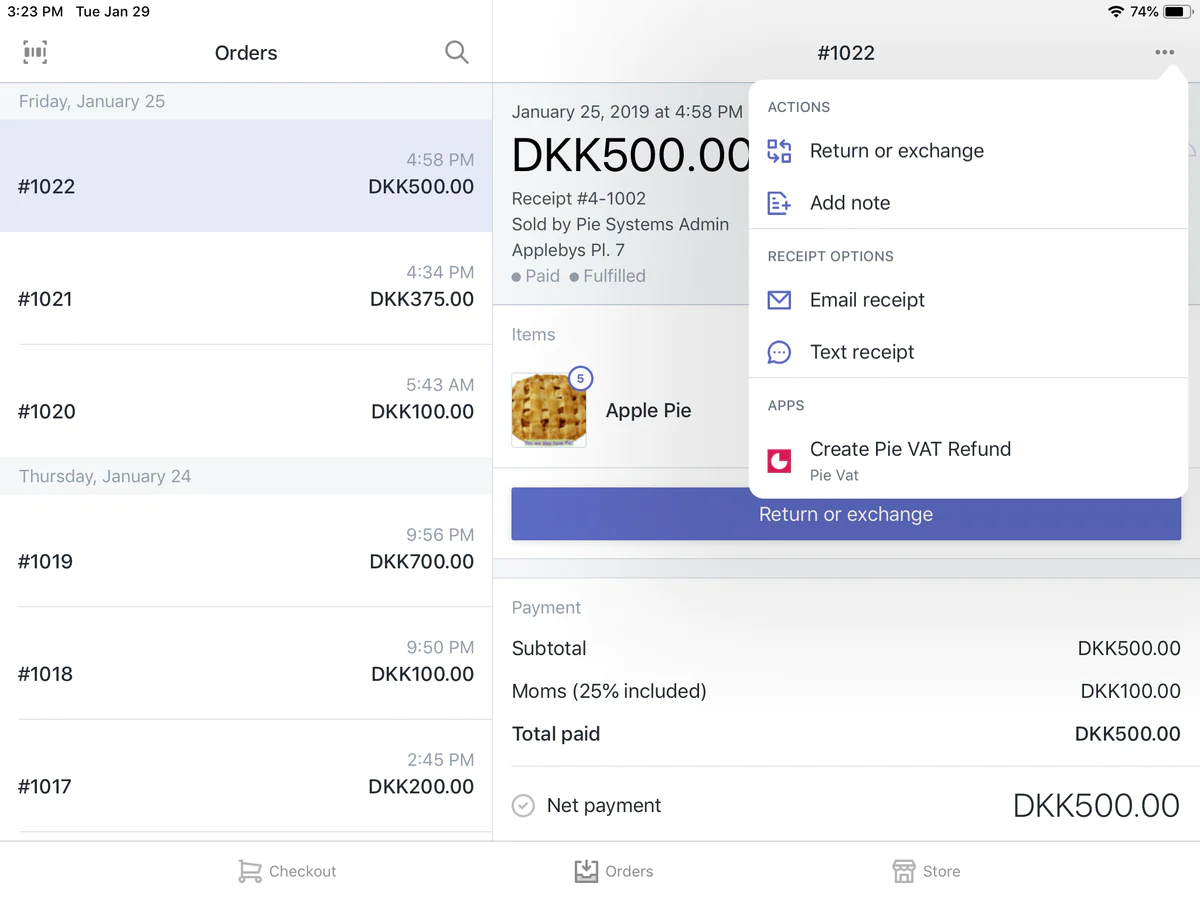 Later on, when the refund is processed, Pie will automatically update your order in Shopify with a tag showing it was a Pie VAT refund. Stores will be able to keep track of transactions and VAT refund orders all through the Shopify dashboard - no need for multiple data sources.