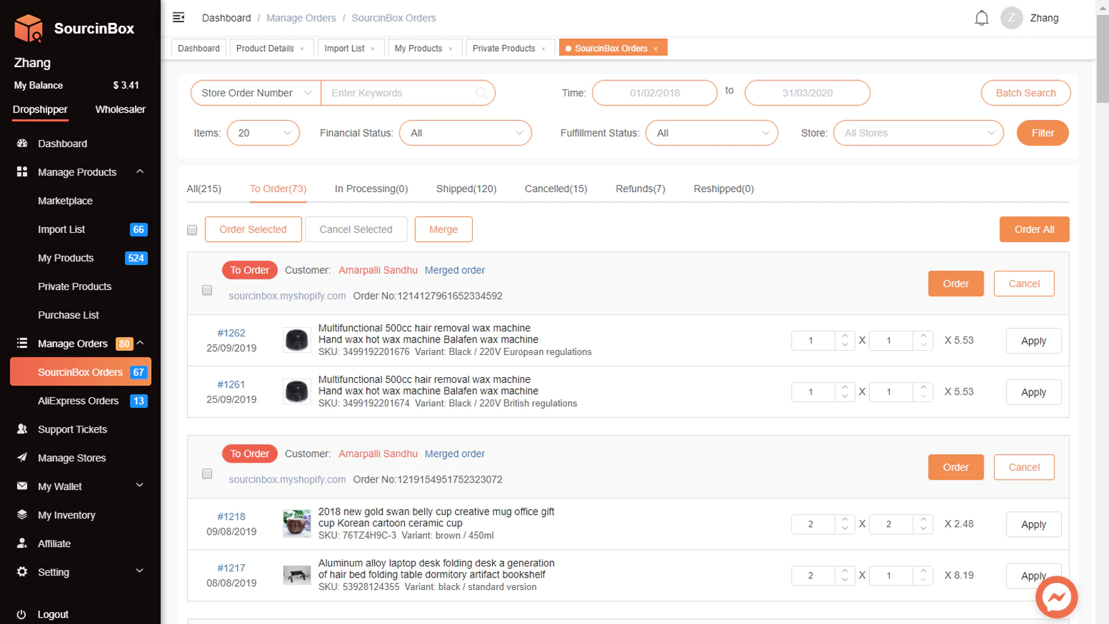 SourcinBox APP is a marketplace where you are able to find a tremendous amount of products directly. Meanwhile, it integrates AliExpress marketplace to facilitate placing AliExpress orders in a super-efficient way, which is a complete free function for all users. It is a gate to automatic fulfillment for your orders. Once you have placed orders to us in SourcinBox, you don't need to do anything, and just leave all the rest to us.
