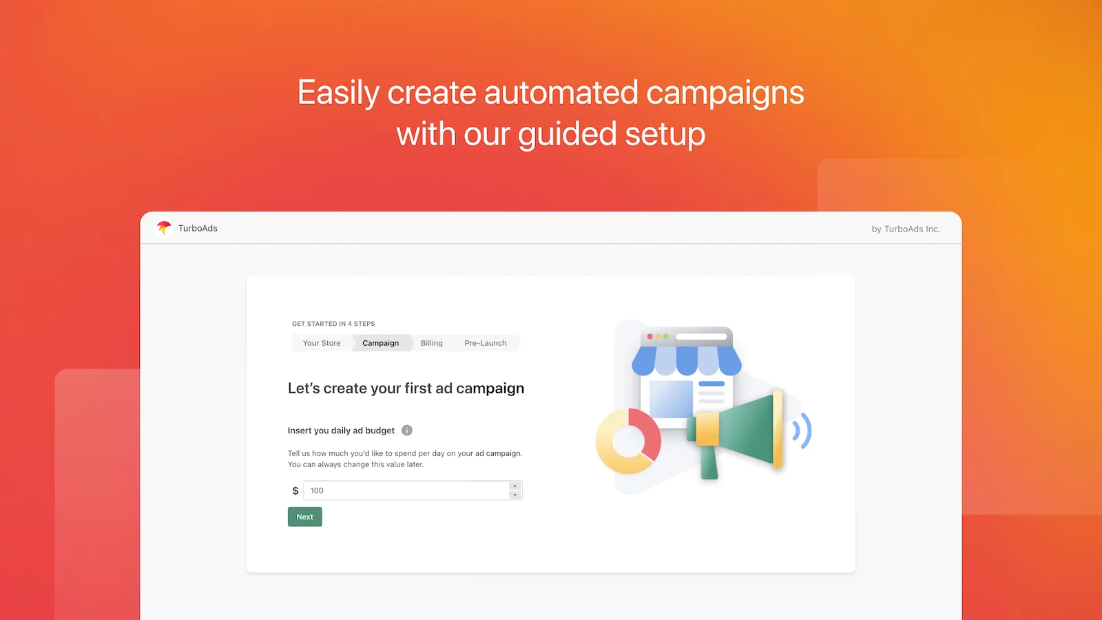 Save time on marketing : Focus on selling. With automatic campaigns, simply set your budget and ads are created automatically based on your store info.
